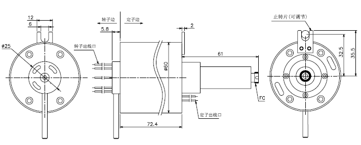 緊定螺絲固定。定子部分通過止轉(zhuǎn)片與設(shè)備固定部位連接。 |